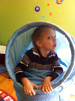 Once we got home, he hopped into the house, diaper in place over his knee, and the MOG fixed him up with 4 Band-Aids and an apple, because he "needed a nutritious snack". He hopped for the rest of the day and has refused to take a bath since, because of the injury. Sigh.